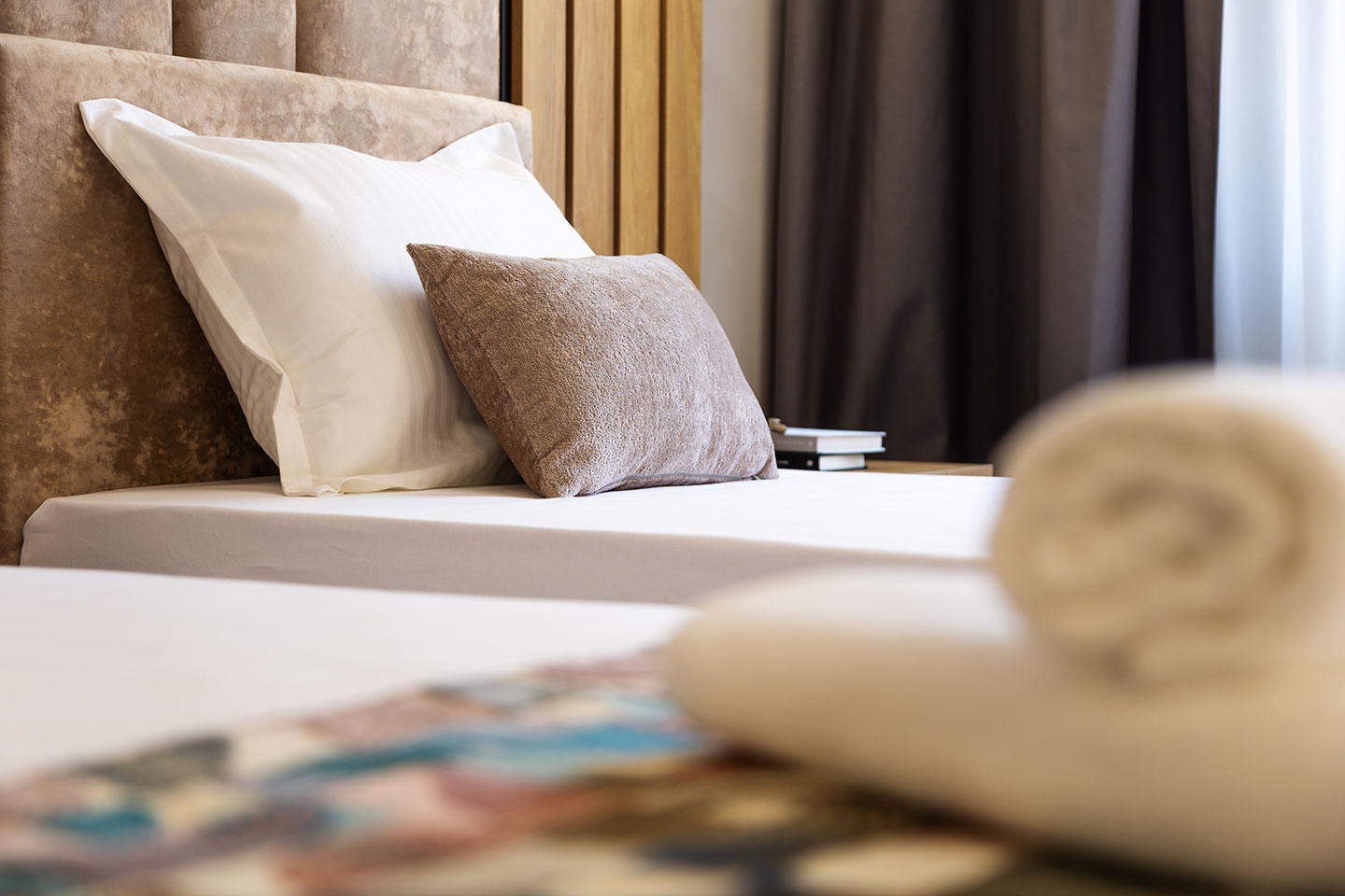 12 от стаите са два отделни единични легла с размери 90 х 190 см, за да отговорят на нуждите на командировани служители и други гости желаещи отделни легла.