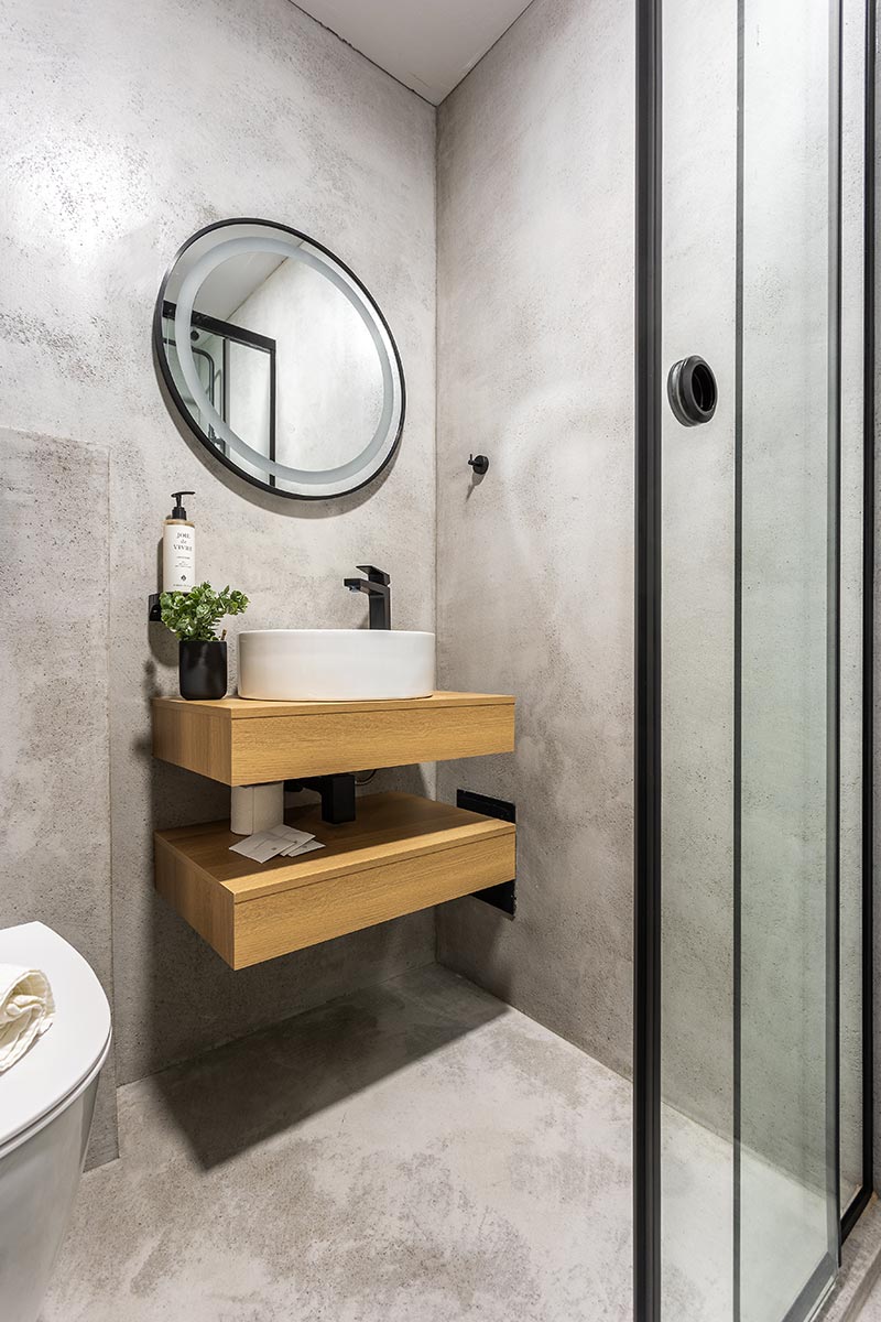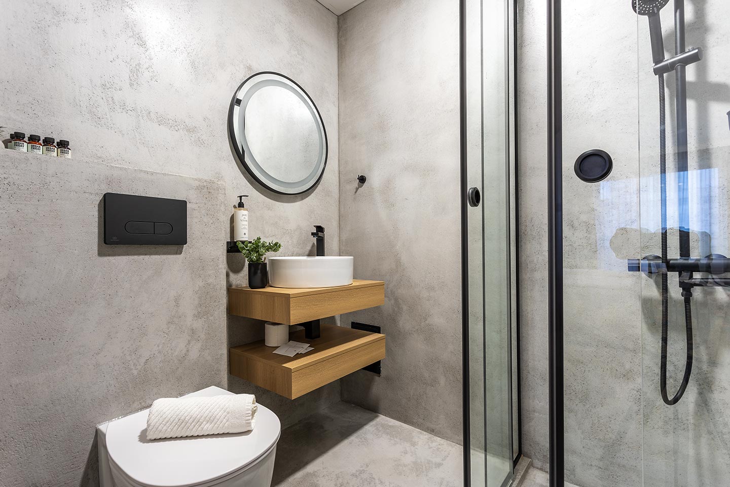 Банята е изпълнена с най-съвременните и модерни мазилки създаващи усещане за уют и комфорт.